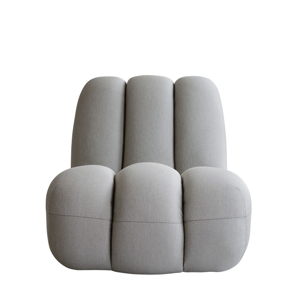 Der Sitz Toe Chair Sunproof präsentiert ein skulpturales Design in Rundungen. Seine großzügigen und segmentierten Formen erinnern an vertikal ausgerichtete, aufgeblasene Kissen, wie ein modulierter Kieselstein. Er ist mit Sunproof-Leinen umhüllt, das für seine Widerstandsfähigkeit und seine raffinierte Haptik bekannt ist. Dieses von 101 Copenhagen entworfene Modell vermittelt einen tiefen Komfort und eine durchsetzungsstarke Ästhetik.