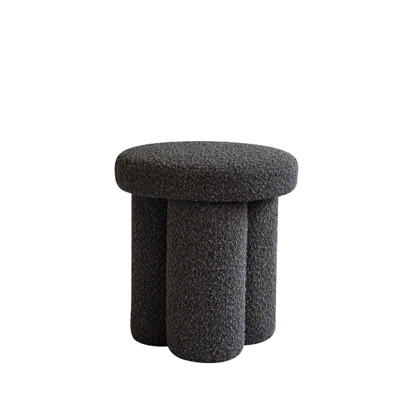 Mit seinen drei zylindrischen Beinen erinnert der Sitz Big Foot Bouclé an eine primitive und skulpturale Form. Seine abgerundete Silhouette ist mit einem Relief-Stoff überzogen, der sich dicht anfühlt. Dieser Hocker spielt mit der Textur, um eine warme und imposante Präsenz zu schaffen. Jedes Element, das von 101 Copenhagen entworfen wurde, ist Teil einer stabilen und ausgewogenen architektonischen Komposition.