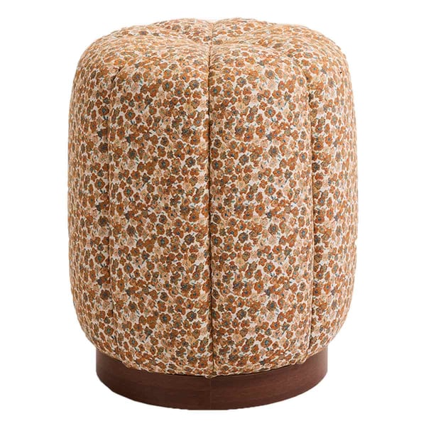 Der Hocker Claudel Floral ruht auf einem Massivholzsockel, der mit einem Stoff mit dichtem Blumenmuster umhüllt ist. Kleine Blütenblätter unterbrechen die Oberfläche in einer ausgewogenen Komposition mit leicht verschwommenen Konturen. Das volle Volumen drückt eine visuelle Weichheit aus, die durch die Rundung seiner Linien akzentuiert wird. Clovi bildet hier einen Sitz mit Retro-Charme, dessen Kurven zum Entspannen einladen.