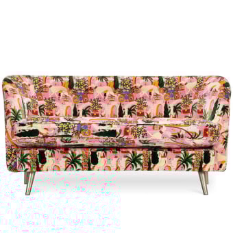Der Sessel Scarlett Schaffell besticht durch seine geformte Silhouette und seinen Bezug aus gelockter Wolle. Er ist voluminös und verfügt über eine geschwungene Rückenlehne, tiefe Armlehnen und eine großzügige Sitzfläche. Das unifarbene Strukturdesign verfeinert die Haptik und vermittelt eine warme Optik. Dieses von Mindthegap entworfene Modell wird durch gealterte Nieten hervorgehoben und behauptet seinen Charakter, getragen von dunklen Holzbeinen.