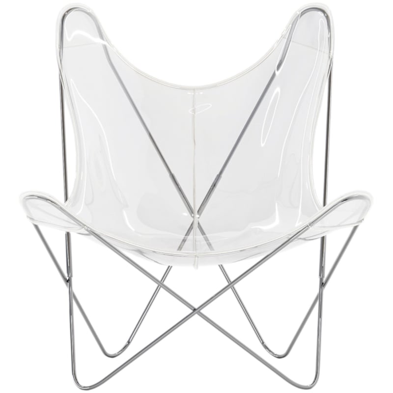 Der Sessel AA Butterfly Transparent verfügt über eine durchscheinende Sitzfläche aus recyceltem Kunststoff, die über einen Rahmen aus poliertem Edelstahlrohr gespannt ist. Die feine Metallstruktur zeichnet eine fließende und schwebende Silhouette. Dieser von Aand entworfene Stuhl vermittelt einen Eindruck von luftiger Leichtigkeit, wie ein vom Licht geformtes Volumen. Das minimalistische Design drückt sich in der Einfachheit der Linien und der Klarheit des Materials unter den Reflexen des Tages aus.