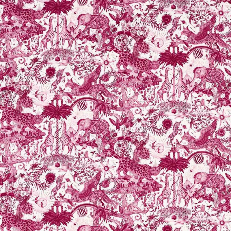 Der Stoff Paradise Lost enthüllt ein magisches Universum, bevölkert von rätselhaften Tieren und umgeben von üppiger Natur. Leoparden, Elefanten und Giraffen mischen sich mit üppigem Laub und geflügelten Kreaturen. Inspiriert von alten Drucken, wird diese Illustration auf weicher Baumwolle lebendig. Dieses Textil von Clarke & Clarke verleiht dem Interieur einen Hauch von Flucht und Raffinesse.