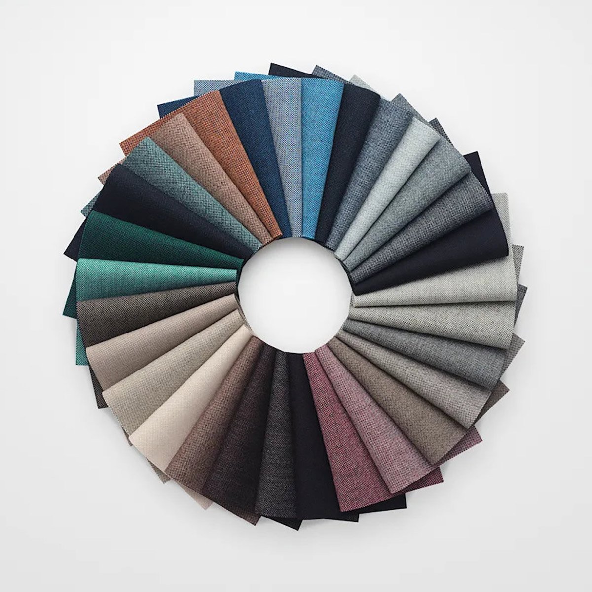Der Bezugsstoff Technicolour verkörpert die visuelle Kraft eines einfarbigen und rauen Textilmusters. Dieser Panelvorhang von Kvadrat ist aus Wolle aus ungefärbten Vliesstoffen gefertigt. Seine dichte Oberfläche trägt die Spuren der Faser in ihrem natürlichsten Zustand. Seine subtile und nuancierte Struktur entsteht aus der Unregelmäßigkeit eines sorgfältig geformten rustikalen Garns.