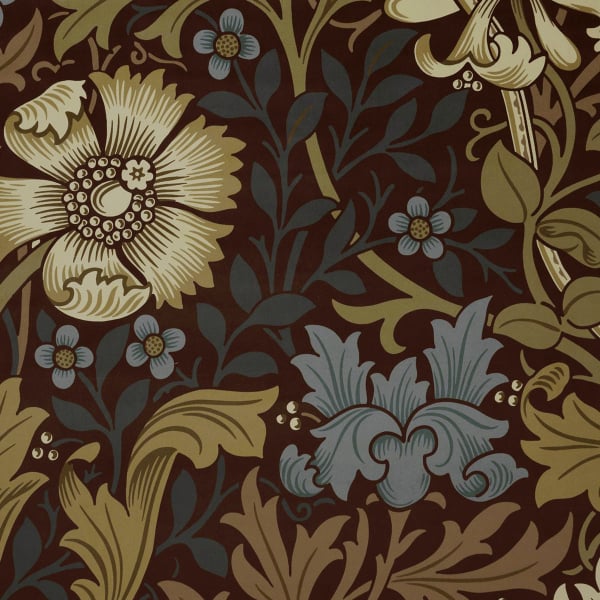 Der Samt Compton Magna enthüllt ein stilisiertes Pflanzenmuster, das von den Archiven des Designers William Morris inspiriert ist. Große Blütenkränze verflechten sich mit biegsamen Stielen zu einer dichten, aber elegant ausgewogenen Komposition. Blütenstände, Geweihe und botanische Voluten verschmelzen in dieser naturalistischen Kreation von House of Hackney.