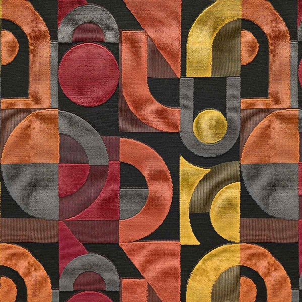 Greta Nuit komponiert ein grafisches Spiel, in dem Bögen, Kreise und halbkreisförmige Blöcke streng ineinander verschachtelt sind. Volle und segmentierte Formen folgen einer sich wiederholenden Anordnung. Der Samt bringt Relief und spielt mit den Kontrasten von Material und Licht. Casal hebt ein geordnetes Muster mit anhaltender grafischer Wirkung hervor.