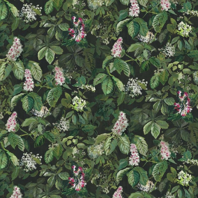 Blütenbüschel blühen in dichtem, üppigem Laub auf dem Pasqueflower-Stoff. Das Pflanzenmuster offenbart eine Szene von großer visueller Vielfalt, die sowohl frei als auch strukturiert ist. Jede Ader, jedes Blütenblatt wird mit Finesse gezeichnet. Diese Komposition mit samtigen Aspekten trägt die Signatur von Designers Guild.