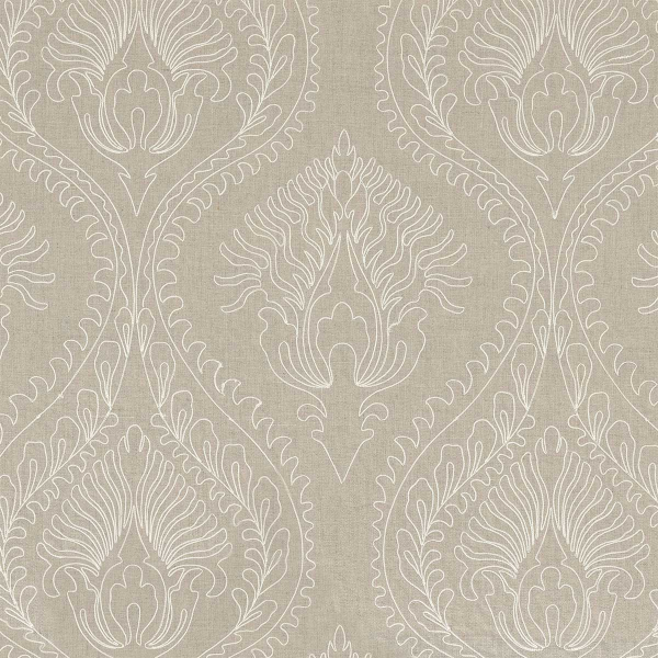 Der Stoff Épure offenbart ein stilisiertes Damastmuster, das sich von einer Leinenbasis abhebt. Inspiriert von einer klassischen Ornamentsprache entstehen symmetrische Formen in einem zarten Layout. Eine Stickerei akzentuiert die grafische Struktur des Designs und unterstreicht gleichzeitig seine textile Dimension. Dieses von Casamance signierte Textil spielt mit dem Kontrast zwischen Rohmaterial und der Raffinesse des Musters.