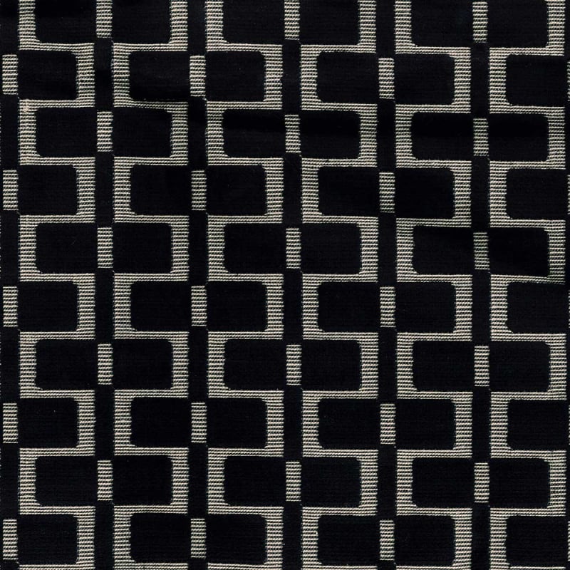 Der Stoff Analogie weist ein geometrisches Muster auf, das aus massiven Rechtecken besteht, die mit feinen vertikalen Linien verflochten sind. Inspiriert vom Art déco spielt es mit grafischen Kontrasten, um einen strukturierten visuellen Rhythmus zu schaffen. Das Design nimmt dank eines Jacquard-Gewebes aus genadeltem Samt Gestalt an, das die Präzision der Linienführung unterstreicht. Casamance bietet eine rigorose Interpretation mit maßvoller Raffinesse.