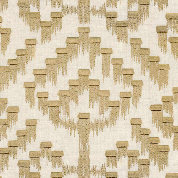 Inspiriert von den japanischen Wasserfällen zeichnet Akame ein geometrisches Muster, das wie ein stilisierter Wasserfall aussieht. Die stufenförmigen Formen geben der Oberfläche des Stoffes einen Rhythmus, wie ein mineralisches Echo des fließenden Wassers. Die natürliche Basis aus Baumwolle und Leinen verstärkt den Material- und Tiefeneffekt. Bei Casamance wird Stickerei zur Sprache, die jede Linie mit Strenge und Poesie formt.