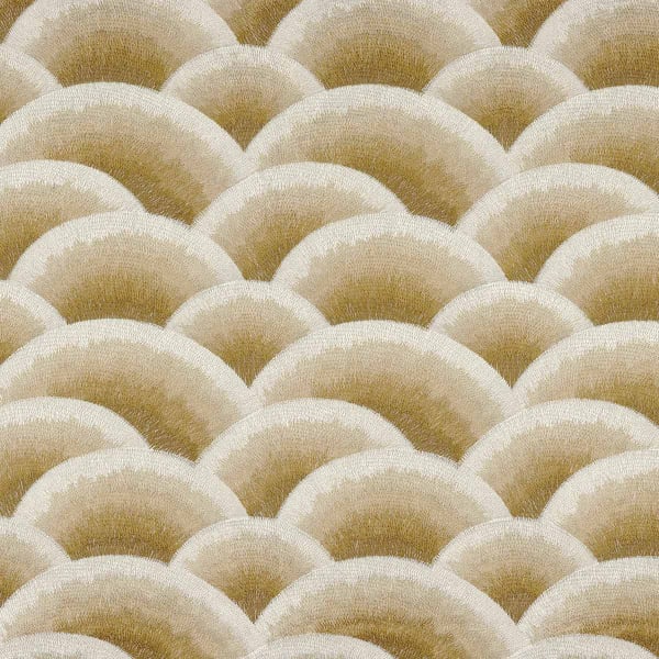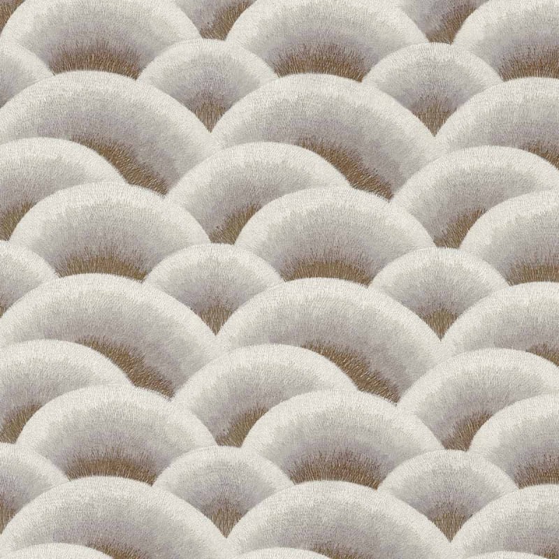 Der Stoff Arcus weist eine regelmäßige Verkettung von fächerförmigen Bögen auf, die an die fließende Bewegung der Wellen erinnern. Dank einer sorgfältigen Stickerei spielt das geometrische Muster mit den Effekten von Schatten und Licht. Jede Form hebt sich sanft ab, als würde sie von einem organischen Atemzug belebt. Casamance erforscht eine rhythmische und hypnotische Ästhetik, die von der Anordnung des Designs getragen wird.