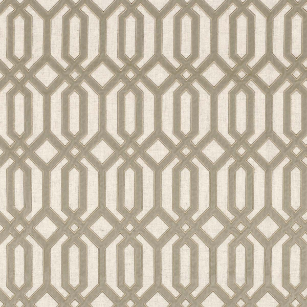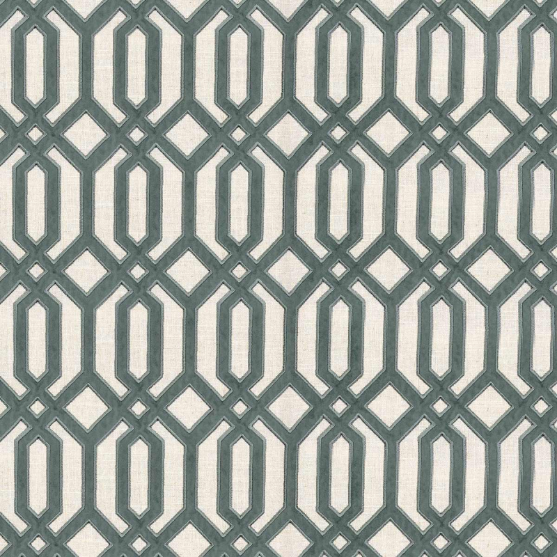 Ein strukturiertes geometrisches Muster durchzieht den von Casamance herausgegebenen Stoff Vibrations. Längliche Formen verflechten sich symmetrisch und erzeugen einen sich wiederholenden Gittereffekt, der durch eine feine Stickerei verstärkt wird. Die Verkettung der Figuren in rhythmischer Harmonie erweckt eine abstrakte Architektur zum Leben. Dieses aus Baumwolle gefertigte Textil suggeriert eine visuelle Tiefe.