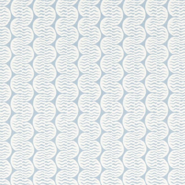 Der Stoff Raft Stripe Print enthüllt ein sich wiederholendes geometrisches Muster, das von einem handgefertigten Linolschnitt inspiriert ist. Wie stilisierte Kieselsteine folgen abgerundete Formen mit feinen Wellenlinien in regelmäßigen Spalten aufeinander. Dieses Baumwoll- und Leinengewebe hat einen natürlichen Griff und eine authentische Textur. Es wurde von Scion entworfen und spiegelt die Strenge der ursprünglichen Linienführung wider.