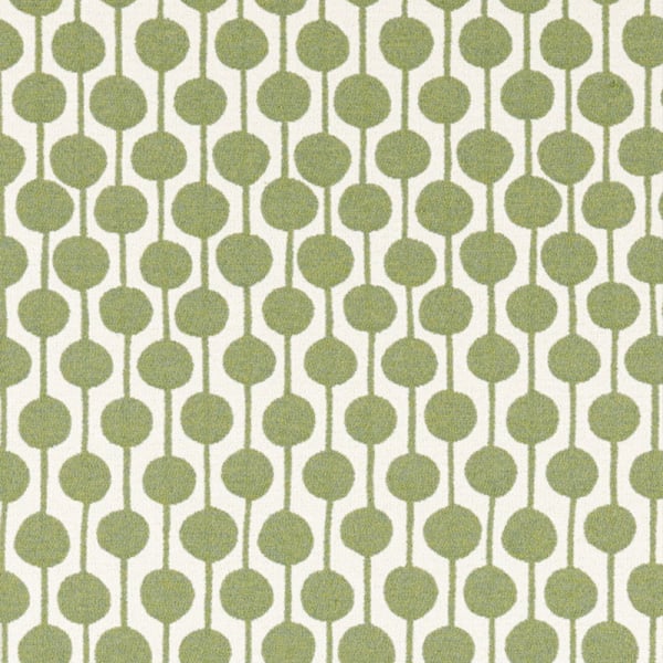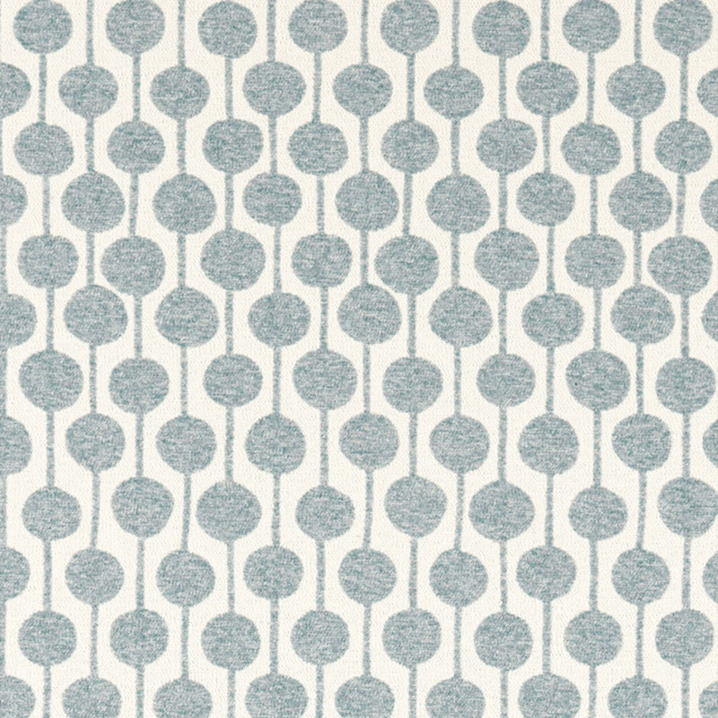 Der Stoff Taimi weist ein geometrisches Muster auf, das aus einer Folge von Figuren besteht, die in regelmäßigen Spalten angeordnet sind. Leicht strukturierte Kreisformen sind vertikal durch feine Linien verbunden. Das Ganze spiegelt eine organische und molekulare Komposition mit einer visuellen Balance wider. Die Webart mit meliertem Erscheinungsbild erzeugt eine subtile Vibration auf der Oberfläche.