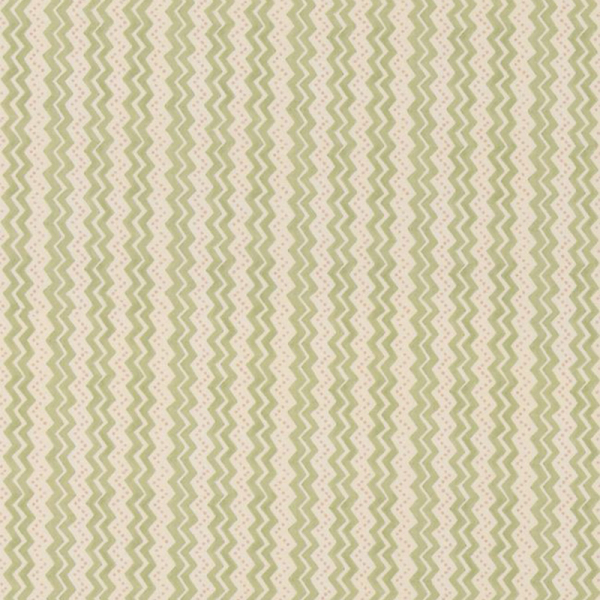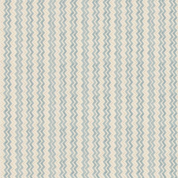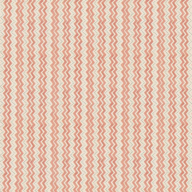 Der Stoff Ziggy entfaltet ein geometrisches Muster mit naivem Charme, signiert von GP & J Baker. Auf einer Baumwollfläche wechseln sich gewellte Zickzacks mit gestrichelten Linien in einer vertikalen Komposition mit ausgewogenem Rhythmus ab. Die unregelmäßige Linienführung deutet auf eine freie Zeichnung hin, wie von Hand skizziert. Diese Grafik, die sowohl einfach als auch ausdrucksstark ist, vermittelt eine sanfte und spontane Bewegung auf der Leinwand.