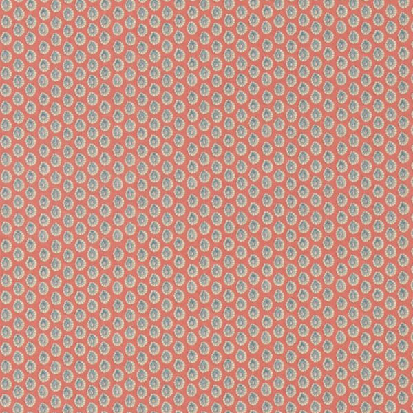 Stilisierte Medaillons bilden das florale Muster mit dem regelmäßigen Erscheinungsbild des Dotty-Stoffes. Jede tropfenförmige Form, die mit einer fast naiven Zartheit skizziert ist, umrahmt eine pflanzliche Illustration. Die leicht vibrierenden Konturen erinnern an eine manuelle Linie, während die Wiederholung einen subtilen grafischen Rhythmus erzeugt. Dieses dekorative Gewebe entfaltet sich auf einer Baumwollbasis.