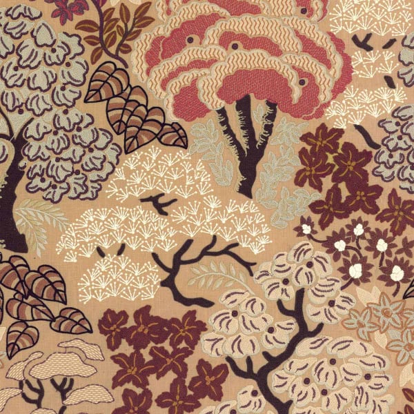 Lelièvre entfaltet mit La Canopée, einem Stoff, der mit einem dichten und poetischen Waldmotiv bestickt ist, eine erzählerische Fülle. Das stilisierte Laub verflechtet sich in einer traumhaften Landschaft, die die Vitalität einer tropischen Flora zelebriert. Das Archiv, von dem er sich inspirieren lässt, erfindet sich hier in einem grafischen Vokabular von schöner Modernität neu. Dieses vollständig aus natürlichem Leinen gefertigte Textil behauptet seine Präsenz in einem weiten und skulpturalen Relief.