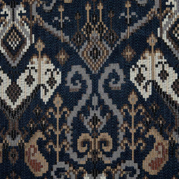 Lelièvre enthüllt Orchila, einen Stoff mit dichter Textur, inspiriert von einem neu interpretierten Ikat. Das geometrische Muster ist spiegelbildlich aufgebaut, zwischen melierten Schussfäden und stilisierten Ornamenten. Das Design legt ein regelmäßiges, fast architektonisches Tempo fest, das das Material strukturiert und den Blick fängt. Jedes Detail offenbart ein Textil-Know-how mit zeitgenössischem Look.