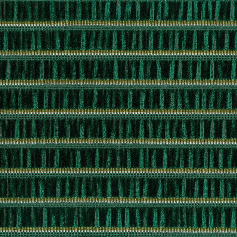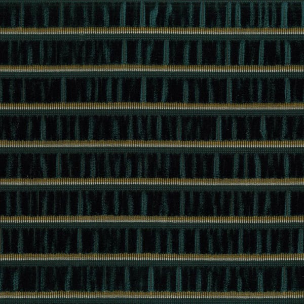 Osborne and Little präsentiert den Stoff Celesta Stripe, bei dem die Regelmäßigkeit des Musters auf die Sinnlichkeit des Materials trifft. Horizontale Streifen aus gerafftem Samt zeichnen eine fast musikalische Kadenz. Zwischen den Streifen sind feine Akzentlinien eingefügt, die die Oberfläche beleben. Dieses Textil erinnert an eine grafische Strenge, die durch eine tiefe Textur und ein subtiles Reliefspiel gemildert wird.