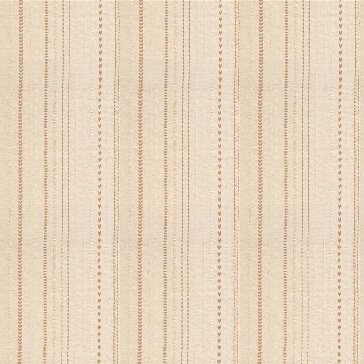 Der Stoff Panier Tressé zeichnet sich durch sein strukturiertes Muster aus fein getakteten vertikalen Streifen aus. Das Design entfaltet einen Wechsel von punktierten Streifen, dezenten Fischgrätenmustern und Mikrofiguren, die an gewebte Glieder erinnern. Leichte Reliefeffekte beleben die Oberfläche und erinnern an die Verflechtung eines handgefertigten Korbs. Diese Komposition bildet einen regelmäßigen Rahmen, in dem jede Linie präzise in eine meisterhafte Textilarchitektur einfließt, die für Designers Guild charakteristisch ist.