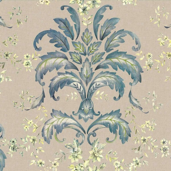 French Damask von Coordonné ist ein Stoff mit einem von klassischen Kompositionen inspirierten Blumenmuster. Das Muster ist um eine zentrale Achse herum angeordnet, wobei sich große Blätter und stilisierte Blumensträuße in einer Damaststruktur gegenüberstehen. Die Ranken umrahmen das Ganze und verleihen ihm eine architektonische, fast heraldische Ausstrahlung. Dieser vollständig aus Baumwolle gefertigte Stoff offenbart ein dichtes Naturmaterial mit wahrnehmbarer Maserung.