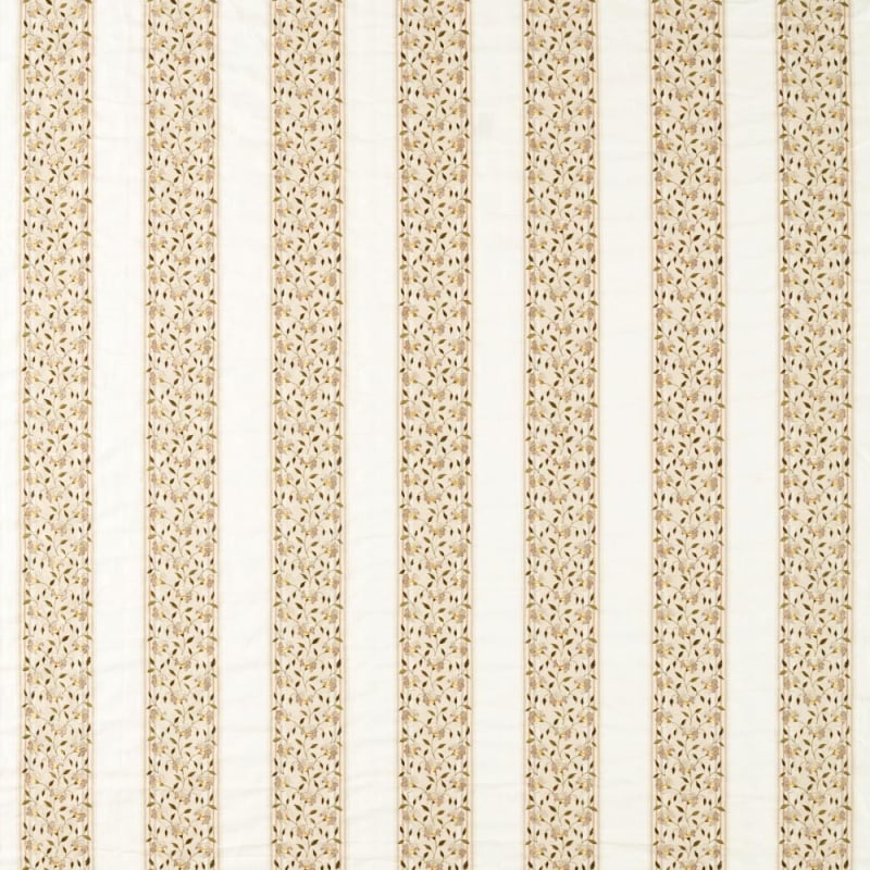 Der Stoff Sloe Blossom von Sanderson besticht durch seine feinen Streifen, die durch ein Blumenmuster lebendig werden. Herabhängende Schlehdornblüten verflechten sich zart entlang der vertikalen Linien. Die Stickerei sorgt für einen gleichmäßigen Rhythmus, der von geschmeidigen Stängeln und dezenten Blütenkronen unterbrochen wird, die der Oberfläche Struktur verleihen. Der aus Leinen und Baumwolle gefertigte Stoff weist eine natürliche Textur auf, die sich lebendig und tiefgreifend anfühlt.