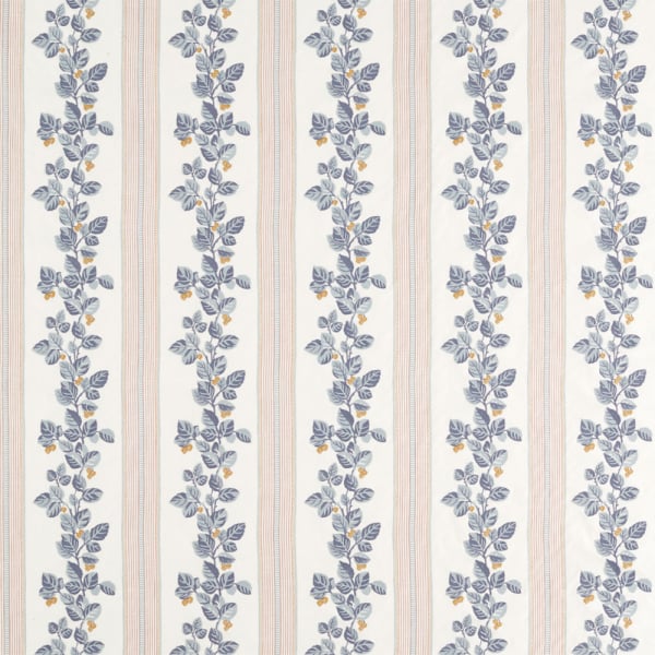 Ein botanisches Streifenmuster von dezentem Charme ziert den Stoff Cobnut Stripe von Sanderson. Das Pflanzenmotiv ist vom Anwesen Brockhampton inspiriert, das einst reich an wilden Haselnusssträuchern war. Die mit taktiler Dichte gestickten Zweige scheinen in die Baumwolle eingraviert zu sein, zwischen vertikaler Strenge und ornamentalem Naturalismus. Die Haptik offenbart eine sorgfältige Handwerkskunst, die sich zwischen Garn und Blattwerk bewegt.