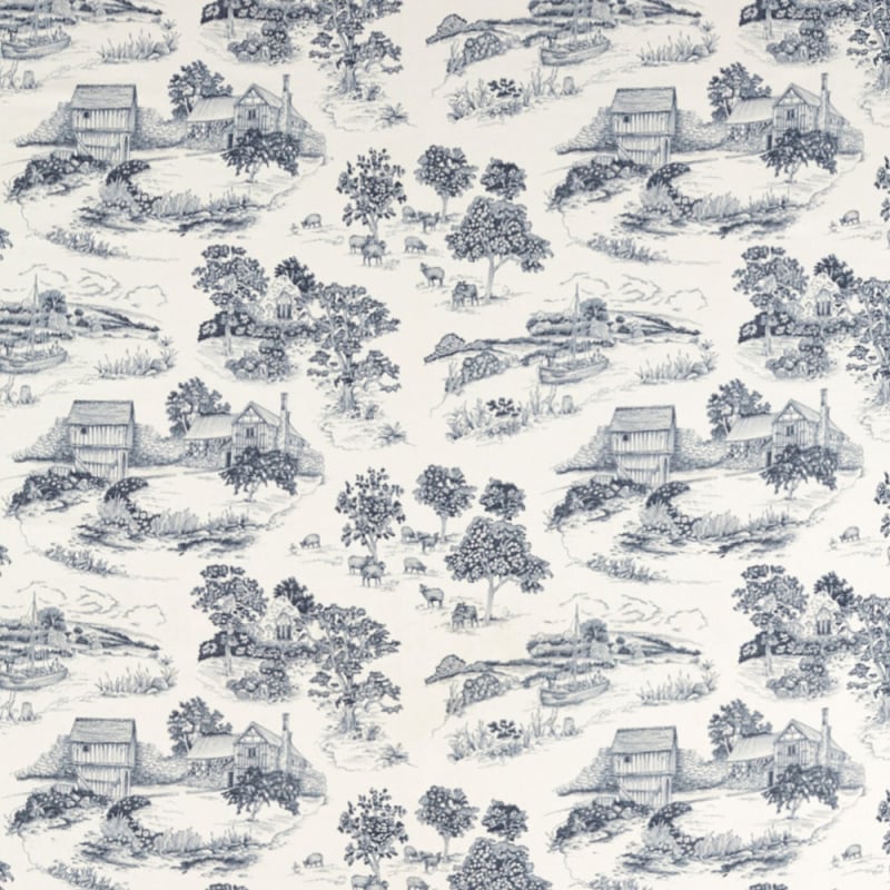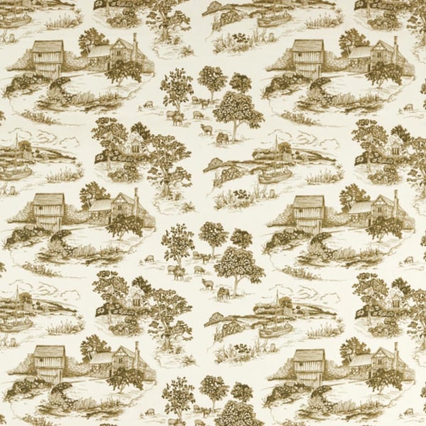 Der von Sanderson entworfene Stoff „Brockhampton Estate“ zeigt ein figuratives Muster, das von den Archiven inspiriert ist. Er zeigt die Landschaften des Anwesens, auf dem sich das Fachwerkhaus und sein Wachhaus befinden. Das Ruderboot Hereford Bull gleitet am Ufer entlang, während Schafe die Landschaft beleben. Der überwiegend aus Baumwolle bestehende Stoff weist eine geschmeidige Naturfaser mit matter Textur auf.