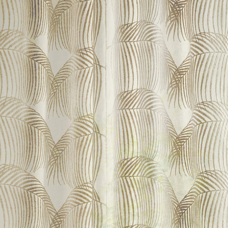 Sanderson signiert den Schleier Manila Leaf, eine zarte Erinnerung an einen von Wind durchwehten Garten. Lange, sich wiegend Palmen entfalten sich in einer geschmeidigen Bewegung, die durch die Feinheit der Stickerei noch betont wird. Das Licht gleitet über die mit Fäden gezeichneten Konturen und erzeugt dezente Schattenspiele. Die Mischung aus Leinen und Baumwolle sorgt für eine weiche und natürlich lebendige Textur.