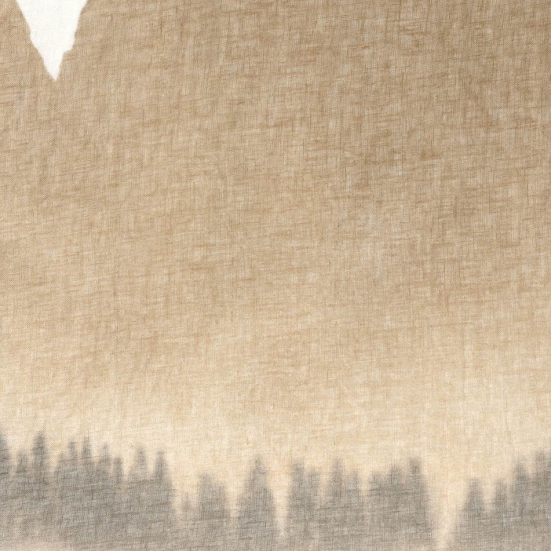 Mirage de Casamance ist ein Stoff mit einem Landschaftsmotiv, auf dem sich ein Wald mit verschwommenen Konturen abzeichnet, der in einem stillen Nebel zu schweben scheint. Das Muster deutet eine diffuse Baumreihe an, deren Silhouetten in das duftige Gewebe übergehen. Seine große Breite unterstreicht den Panoramaeffekt eines Horizonts, der sich in aller Ruhe ausdehnt. Er besteht vollständig aus Leinen und offenbart eine lebendige Textur, die in einer greifbaren Präsenz verankert ist.