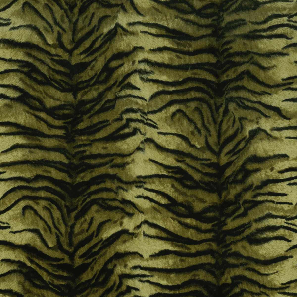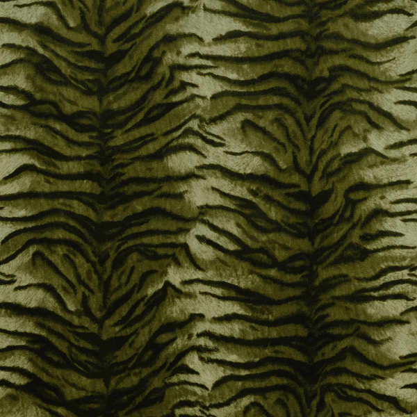 Der Samt Caspian ist ein von House of Hackney entworfener Stoff, dessen Tiermotiv vom Tigerfell inspiriert ist. Die unregelmäßigen Streifen verlaufen in geschwungenen Linien und wechseln zwischen Dichte und Leichtigkeit. Er besteht überwiegend aus Baumwolle und weist eine lockere Naturfaser auf, die dem Stoff Festigkeit und Tiefe verleiht. Sein seidiges Aussehen und sein flauschiger Griff sorgen für ein umhüllendes Tastgefühl.
