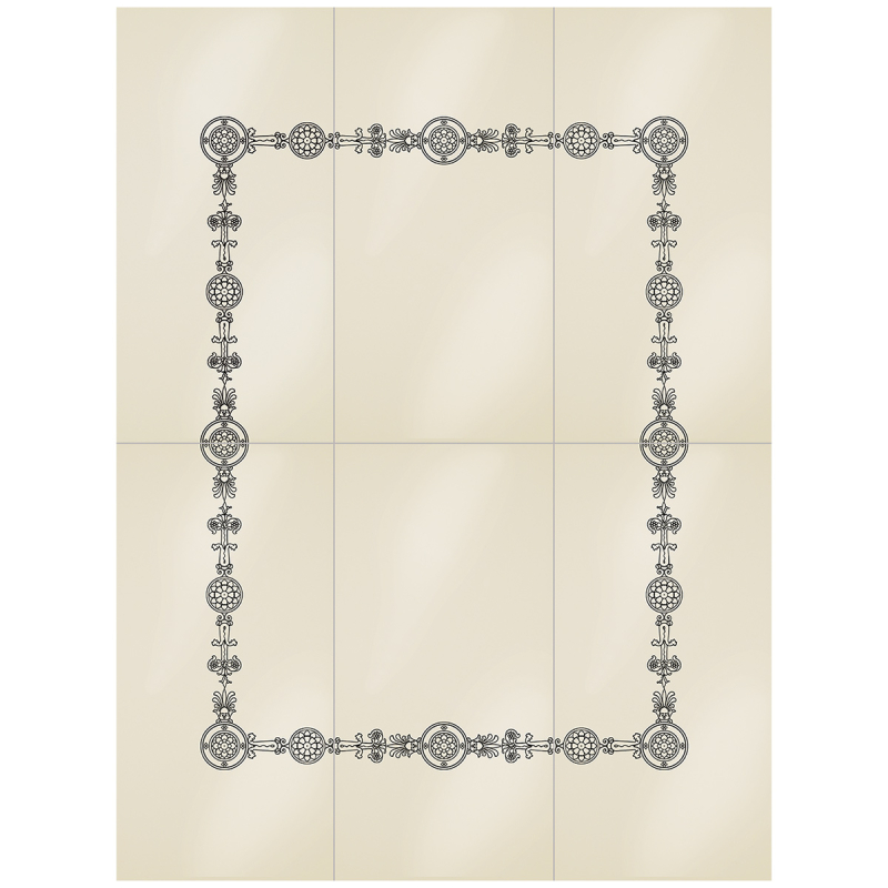 The Composizione Corniche ceramic tile presents a lovely black filigree frieze. Inspired by the Classic period, this delicate illustration develops on 6 tiles to form a refined and authentic assembly. Handmade, this exceptional slab will match with sophisticated decoration projects.