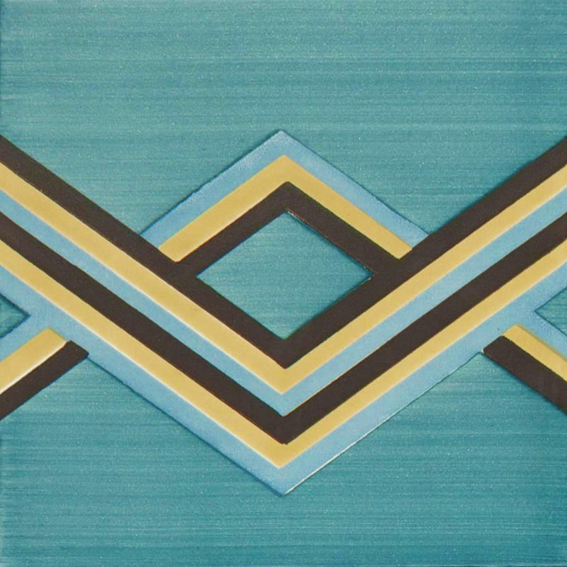 Die Keramikfliese Chloris Greca ist in intensiven Farben gehalten und mit einem grafischen Band versehen. Diese rhythmische Komposition, die von der Architektin Cristina Celestino entworfen wurde, verbindet sich mit den Fliesen der gleichen Kollektion, um Kombinationen zu schaffen, die ebenso fantasievoll wie dekorativ sind.