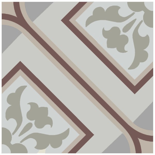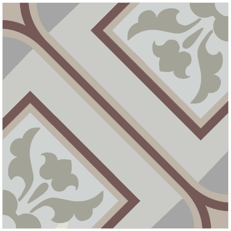 Das Feinsteinzeug Victoria ist eine Fliese mit grafischen Akzenten, die mit einem geometrischen Muster verziert ist, das von stilisiertem Laub durchsetzt ist. Gekreuzte Linien zeichnen eine dezente Diagonale und ein ausgewogenes Netzwerk. Das Dekor erinnert durch die Strenge seiner Komposition an alte Pflastersteine. Sie wurde von Estudio Ceramico entworfen und schmückt sowohl Wände als auch Böden.
