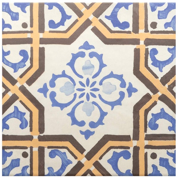 Die Feinsteinzeugfliese Ares Decor Maestrat zeigt ein geometrisches und florales Muster, das von alten Azulejos inspiriert ist. Seine gekreuzten Linien zeichnen eine rhythmische Architektur nach, die von Arabeskenfiguren mit weichen Konturen unterbrochen wird. Der visuelle Effekt, der sowohl ornamental als auch symmetrisch ist, verleiht eine dekorative Zartheit. Dieses von Equipe herausgegebene Stück enthüllt ein sorgfältiges Design, bei dem jedes Detail seinen grafischen Reichtum unterstreicht.