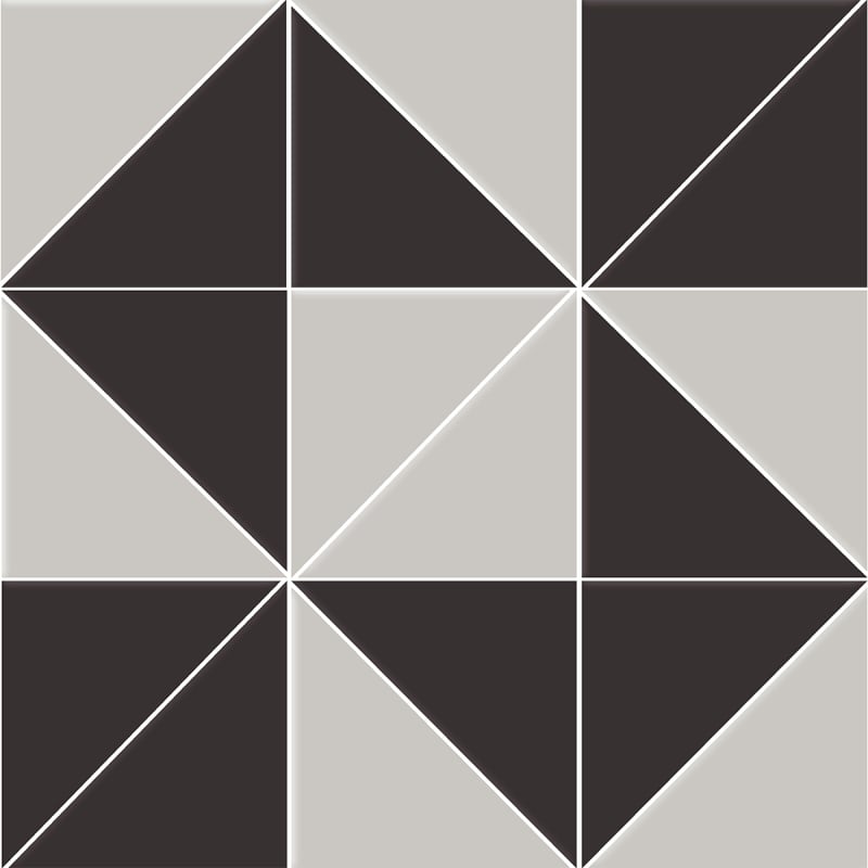 Mosaïque Decor 2 ist eine Fliese, deren geometrisches Muster auf einer lebhaften Anordnung zweifarbiger Dreiecke basiert. Die präzise angeordneten Formen bilden einen symmetrischen visuellen Rhythmus. Dieses Modell von Ceramica Vogue aus emailliertem Feinsteinzeug präsentiert eine Oberfläche mit klaren Linien. Es spiegelt eine Suche nach Gleichgewicht und Kontrast in einer grafischen Ästhetik wider.