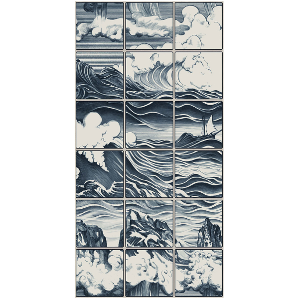 Die von Bardelli entworfene große Steinzeugfliese Sea Maioliche erzählt ein maritimes Motiv, in dem die Elemente entfesselt werden. Auf dieser großformatigen Fliese begegnen die Segel dem Meer, die Wellenkämme berühren den Horizont, die Winde krümmen die Wolken. Der Geist der Majolika wird in einer modernen grafischen Sprache wiedergeboren. Das Dekor erinnert an eine Traumkarte, zwischen Fantasie und Erinnerung an Küstenlandschaften.