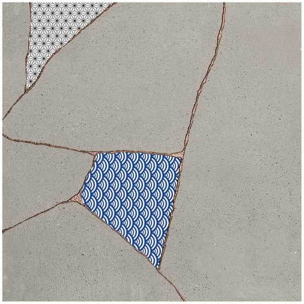 Durch ihre zarten Linien und grafischen Inlays erinnert die Feinsteinzeugfliese Japan Hibi an die japanische Kunst des Kintsugi. Sie enthüllt dekorative Fragmente, die von traditionellen Motiven inspiriert sind und in eine Oberfläche mit Zementoptik eingebettet sind. Die Präsenz erzählerischer geometrischer Kompositionen verleiht dem Modell eine stille Tiefe. Das Know-how von Fioranese spiegelt diese sensible Begegnung zwischen kulturellem Gedächtnis und keramischem Material wider.