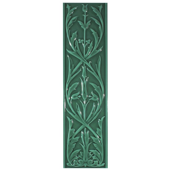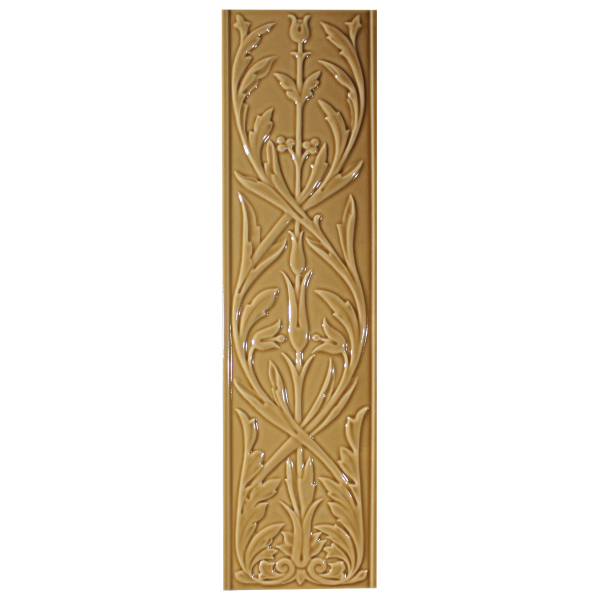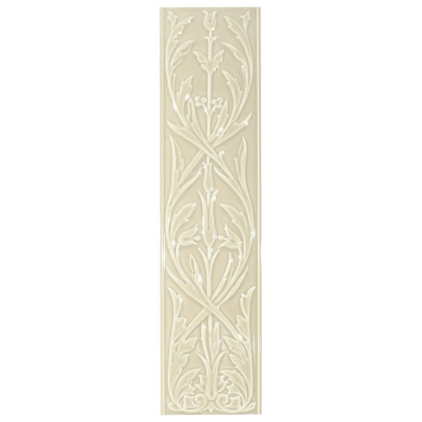 Die von Ceramiche Grazia entworfene Porzellan-Steinzeugserie „Hermitage“ besticht durch ein neugotisches, florales Flechtmuster. Das Motiv, geometrisch und organisch zugleich, zeigt geschwungene Stängel, die von zarten Blüten durchbrochen werden. Der Gesamteindruck ist ein filigranes, fast skulpturales Fresko. Die aus Feinsteinzeug gefertigte Basis offenbart ein dichtes Material mit einer subtil modellierten Oberfläche.
