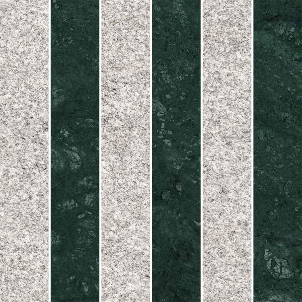 Das von 41zero42 signierte Mosaik Stripes offenbart ein geometrisches Muster mit rhythmischem Charakter. Regelmäßige Streifen folgen in schlanken Bändern aufeinander und zeichnen einen fließenden und strukturierten visuellen Rhythmus. Der dezent nuancierte Mineraleffekt erinnert an die Tiefe von Marmor und die Dichte von Granit. Ihre Feinsteinzeug-Oberfläche vermittelt eine ausgewogene und zeitgemäße grafische Präsenz.