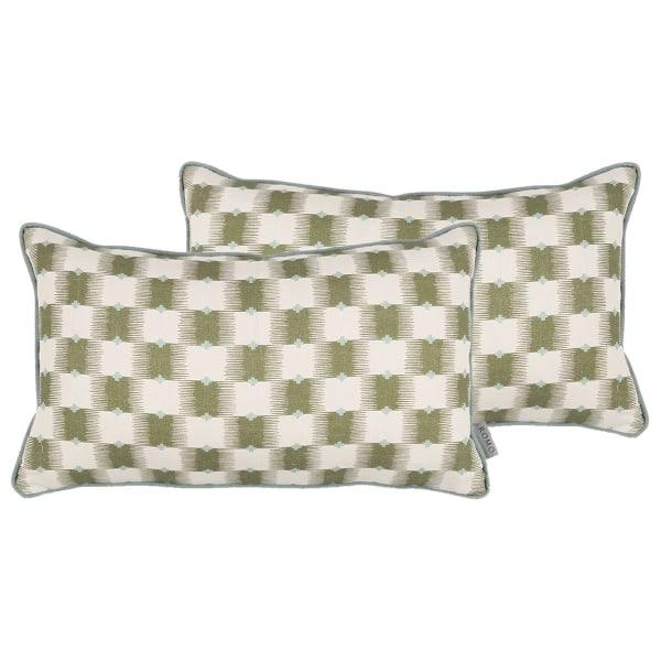 Das quadratische Kissen Ziri enthüllt ein geometrisches Muster, das durch ein Raster aus hellen und dunklen Formen strukturiert ist. Dynamische Schraffuren beleben die Oberfläche und erzeugen einen visuellen Vibrationseffekt. An jeder Kreuzung führt ein kleines farbiges Kreuz zu einer regelmäßigen Interpunktion auf dem Ganzen. Dieses Modell von Romo aus Leinen und Baumwolle ist mit einer dezenten Paspel für ein gepflegtes Finish eingefasst.
