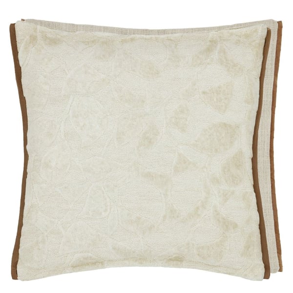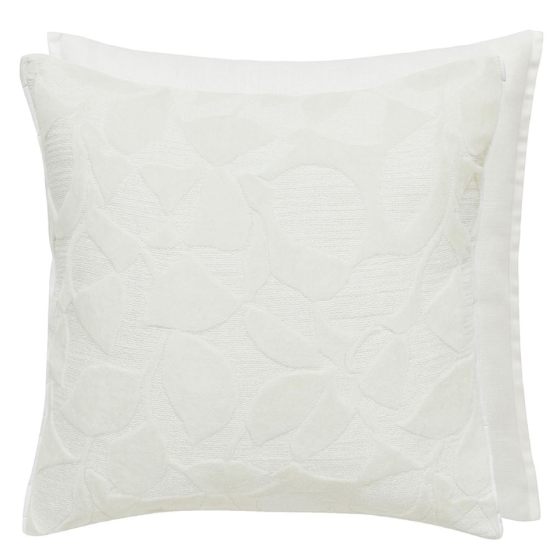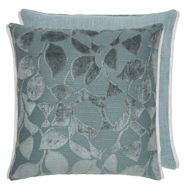 In einer ausgewogenen Komposition spielt das Kissen Celandine mit dem Gegensatz zwischen einer verzierten Vorderseite und einer einfarbigen Rückseite. Gewellte Blätter schlängeln sich über die strukturierte Oberfläche. Das Pflanzenmuster aus geschnittenem Samt hebt sich ab und erzeugt eine flauschige Struktur. Designers Guild unterstreicht die Linien durch eine sorgfältige Verarbeitung mit einer dezenten und raffinierten Paspel.
