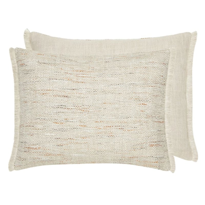 Gwen ist ein Kissen, das die rohe Schönheit von Leinen unterstreicht. Auf der Vorderseite weist die strukturierte Oberfläche ein unregelmäßiges, einfarbiges Muster auf, das von den Mineralien einer Klippe inspiriert ist. Die Rückseite ist nüchterner und enthüllt die Reinheit der Naturfaser. Feine Fransen kleiden zwei Seiten und verstärken die handwerkliche Zartheit dieser Kreation von Designers Guild.