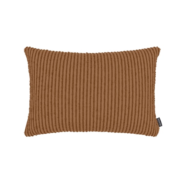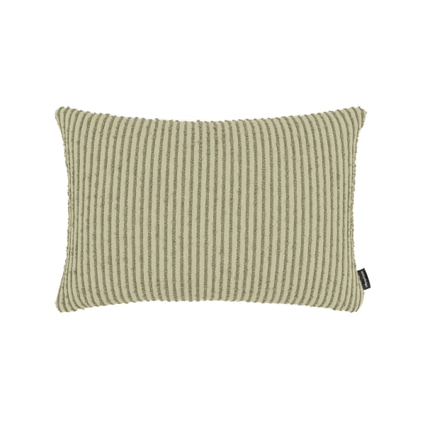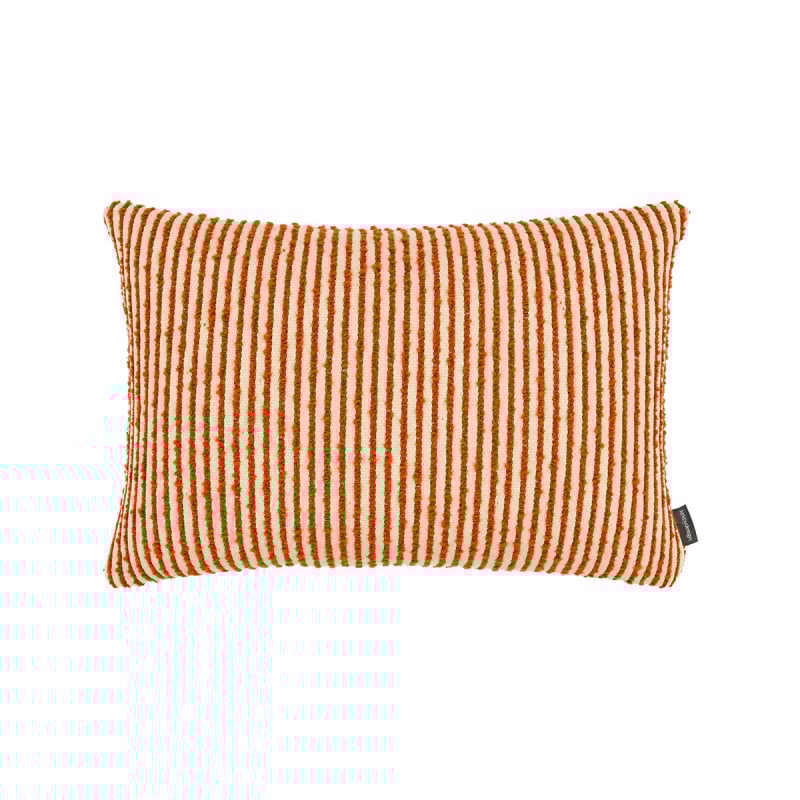 Feel ist ein rechteckiges Kissen, das durch ein unregelmäßiges Streifenmuster strukturiert ist, bei dem die Textur zur Sprache wird. Gekräuselte Wolllinien erheben sich mit Relief auf einem Hintergrund aus recycelter Baumwolle und zeichnen einen dichten und lebendigen Rahmen. Die grafische Komposition steht im Dialog mit dem Rohmaterial und eröffnet ein taktiles Erlebnis. Kirkby Design steht für eine zeitgenössische Ästhetik.
