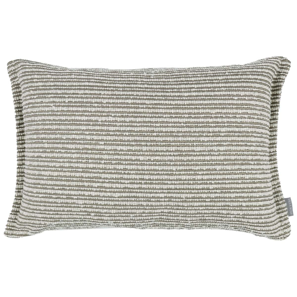 Das rechteckige Kissen Torus zeigt ein Streifenmuster, das in eine Jacquard-Struktur eingewebt ist. Jeder Streifen, der aus gekräuselten Fäden besteht, folgt einem freien Rhythmus und erzeugt einen nuancierten grafischen Effekt. Die Oberfläche offenbart eine feine Textur, die aus einem Baumwollgewebe stammt. Das Haus Villa Nova entwirft ein schlichtes Stück, das um Material und Details herum aufgebaut ist.