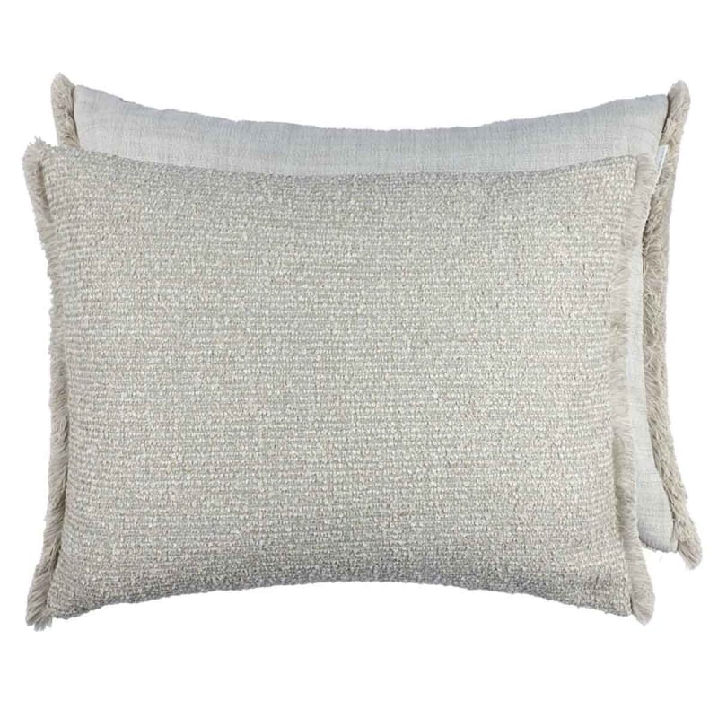 Designers Guild präsentiert das Kissen Kintail, ein Dekor mit einem Faux-Uni-Muster, dessen Oberfläche ein robustes, gelocktes Gewebe offenbart. Die dichte Textur verleiht dem Material einen dezenten und lebendigen Rhythmus. Die einfarbige Rückseite aus Baumwolle bildet einen glatten und gleichmäßigen Kontrapunkt zu dieser ausdrucksstarken Struktur. Ein Rand mit gebürsteten Fransen umrahmt das Ganze und unterstreicht seine Silhouette.