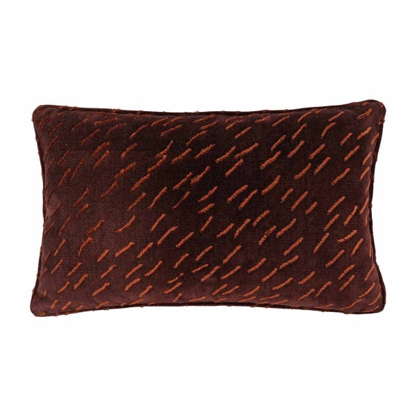 Zinc hat sich das Kissen Siam als ein Spiel aus skizzierten Linien vorgestellt, die in einem unregelmäßigen Rhythmus angeordnet sind. Der tiefe Samt ist mit einem dezenten geometrischen Muster versehen, bei dem ein Wimpernfaden diagonale, fast kindliche Linien zieht. Die Oberfläche hebt sich sanft unter den Fingern, dicht und flauschig. Jedes Detail offenbart einen meisterhaften Kontrast zwischen textiler Raffinesse und formaler Naivität.