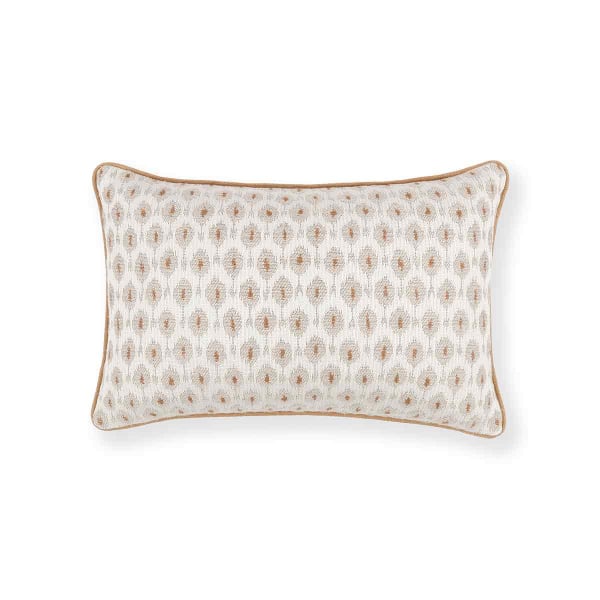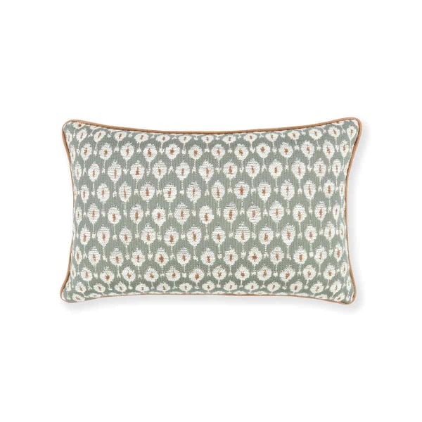 Romo präsentiert das Kissen Otillo, das mit einem Ikat-Muster verziert ist, das im Rhythmus der Webkunst zu vibrieren scheint. Die Präzision seines Designs, das aus Nuancen und Reliefs besteht, erinnert an eine Textilästhetik, die sowohl grafisch als auch filzig ist. Sein überwiegend aus Baumwolle bestehendes Material zeichnet sich durch einen weichen Griff und eine natürliche Maserung aus. Eine feine Paspel betont die Konturen und sorgt für ein strukturiertes Finish.
