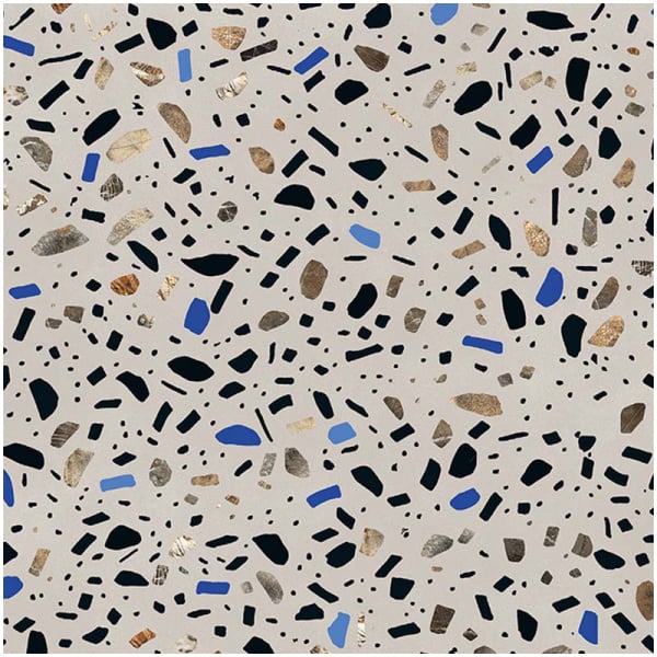 Das feinkörnige Feinsteinzeug Ghiaia wurde vom Architekten Luigi Romanelli für Maison Fioranese entworfen. Inspiriert von Terrazzofliesen, ist die tiefe, intensive Farbe Blau das zentrale Motiv. Dieses Muster wird im Kaltdigitaldruckverfahren erzeugt, was eine optimale Farbwiedergabe und Detailtreue gewährleistet. Die Fliesen sind in zwei Größen erhältlich, und drei verschiedene Farben können gemischt werden, um ein leichtes, modernes Ambiente zu schaffen. Diese filigrane Fliese ist in glänzender oder matter Ausführung erhältlich.