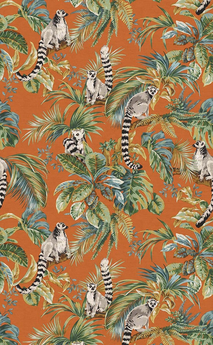 JV Italian Design präsentiert mit der Tapete „Lemuri“ ein tropisches Design. Das Muster zeigt Lemuren, die auf Palmenzweigen ruhen. Die natürlichen Farbtöne bilden einen schönen Kontrast zum schlichten Hintergrund. Die feinen Linien verleihen der Tapete einen kühnen, exotischen Stil für jedes Interieur.