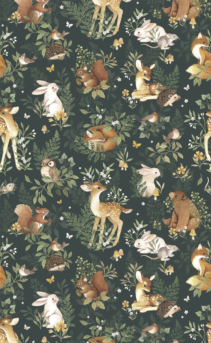 Diese Lilipinso-Tapete ist in dunklen und hellen Farben erhältlich und besticht durch ihr bezauberndes Muster. Wie eine Illustration zeigt sie detailgetreu die Flora und Fauna des Waldes. Zwischen Zweigen, Blumen und Pilzen entdecken Sie Kaninchen, Igel, Rotkehlchen, Bären, Rehe, Eulen, Füchse und Schmetterlinge. Die Vliestapete eignet sich ideal für die Gestaltung von Kinderzimmern.